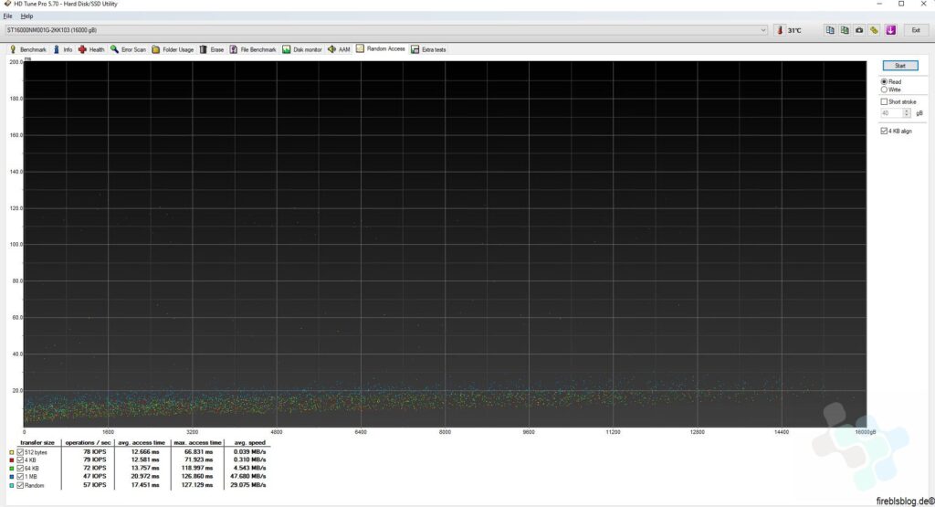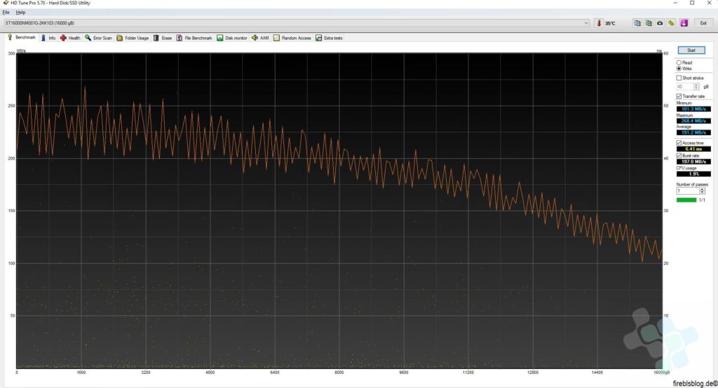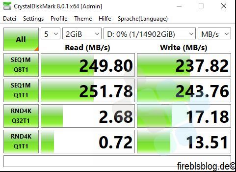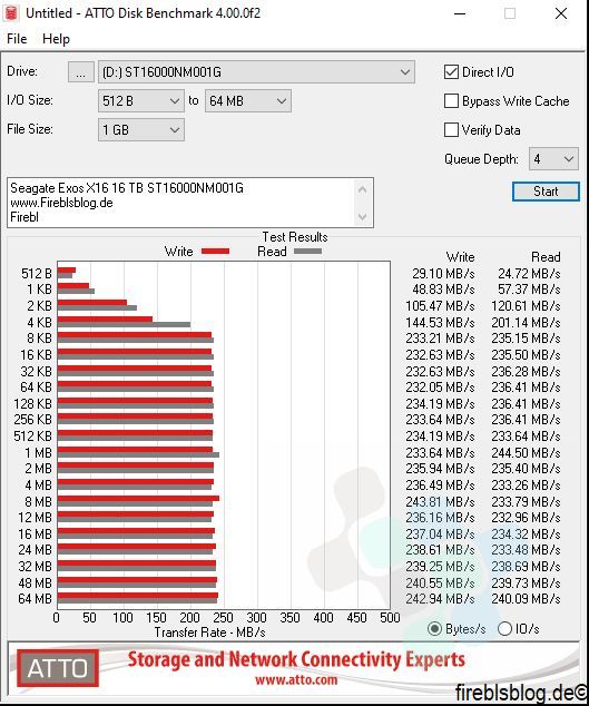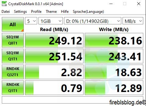 Aus heutiger Sicht sind bis zu 260 MB/s maximale sequenzielle Transferrate natürlich nicht mehr überraschend. Über viele Jahre haben wir uns an diese Leistung gewöhnt und die 300 MB/s wurden bereits auch schon von der Toshiba MG11, 24TB, MG11ACA24TE erreicht. In der damaligen Zeit war dieses Ergebnis natürlich hervorragend. Bereits mit einer Festplatte lässt sich ein NAS oder ein kleiner Server mit 1-GBit/s-Anschluss voll bedienen.